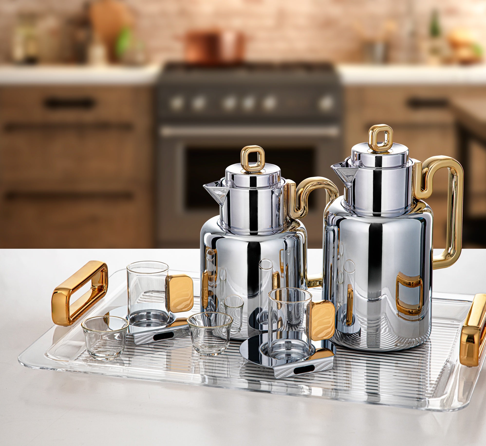 طقم تقديم المرجان ٢٤ قطعة فضي وذهبي