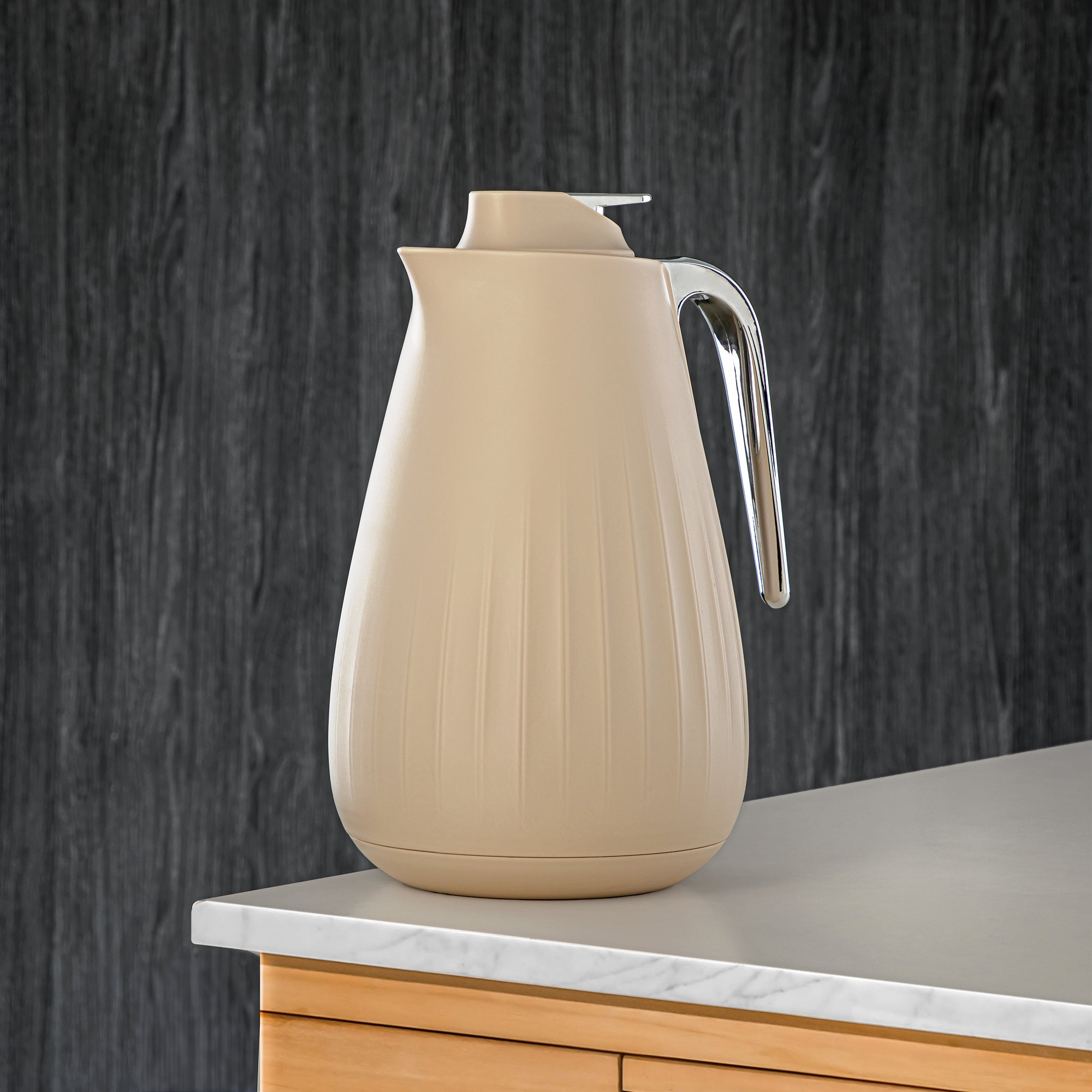 ترمس المرجان سعة 1.0 لتر (QVC-1000Q265YZC) - زر ضغط، رمادي حجري وفضي | أدوات تقديم عصرية